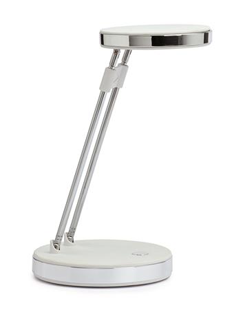 Összecsukható, helytakarékos, könnyen kezelhető asztali lámpa, acélból készült, teleszkópos karral. Stabil talp nehezékként szolgáló súlybetéttel, az alján az íróasztal felületét kímélő réteggel. A kapcsoló a lámpa talpán van, a be- és kikapcsolást így kényelmessé teszi.
