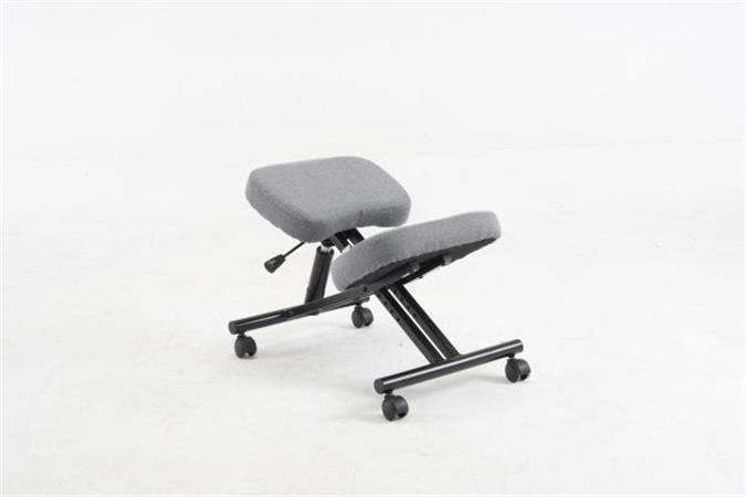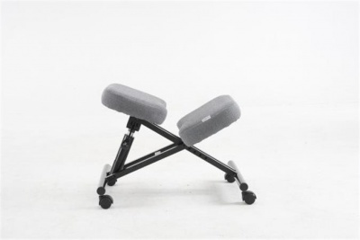 Térdeplőszék, gázliftes, szürke szövetborítás, fekete fém váz