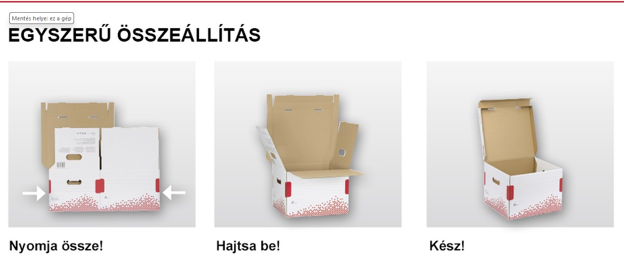 A „Speedbox” dobozokkal időt és energiát takaríthat meg. Mindössze egy mozdulat és máris készen állnak az archiválásra. Összeállításuk könnyű és gyors, nincsen szükség összeállítási útmutatóra. A 100%-ban újrahasznosított és 100%-ban újrahasznosítható karton alapanyagból készült dobozok és konténerek ideálisak mind irodai, mind otthoni használatra.
