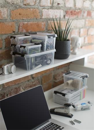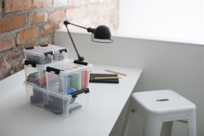 Műanyag tárolódoboz, 1,5 liter, fekete fogantyúkkal, SMARTSTORE "Classic 1,5", átlátszó