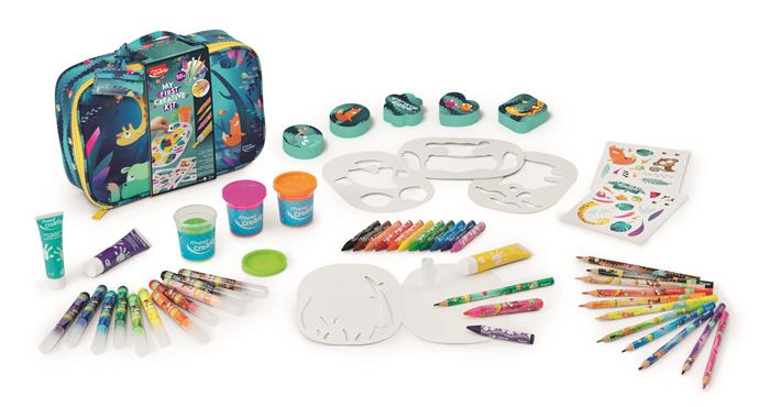 Kifejezetten kisgyerekek számára tervezett készlet, amely több különböző kreatív eszközt tartalmaz.