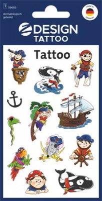 Matrica, tetoválás, 1 ív, 76x120 mm, AVERY ZWECKFORM, "Z-Design No.56683", kalózok