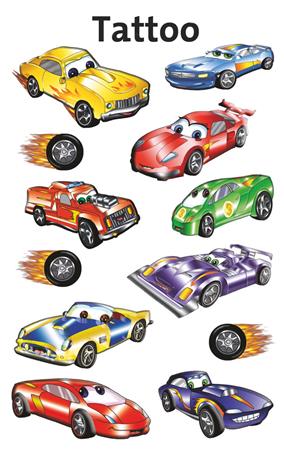 Autó tetoválás kis autóverseny-rajongóknak! Lepje meg gyermekeit nagyszerű tetoválásokkal, gyermekei imádni fogják a vagány autóversenyes tetoválást. Tökéletes ajándék, vagy apró meglepetés, amivel hazaérkezik, születésnapi partikra vagy egyszerűen arra, hogy a gyerekek játszanak.