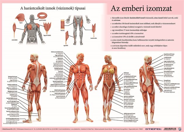Az emberi vázizomzat két oldalas alátétünk rendhagyó módon mutatja be az ember izomzatát. A hasonló jellegű termékek általában ugyanazt a szemből látható, „kiterített” emberalakot ábrázolják. A Stiefel könyöklője ezzel szemben megmutatja a női test felépítését is, s így láthatóvá válnak a női és a férfi testfelépítés különbségei, ami érdekessé teszi a terméket, és ami ennél fontosabb, magát a témát is, a biológiaórán az emberi testtel foglalkozó felső tagozatos diákok számára. Mivel az alátéten négy emberi test állt rendelkezésre, az izmok bemutatásának több hely jutott, az oktatóábrák így „szellősek”, jól áttekinthetők lettek. Az alátét másik oldala, az Érzékszervek eredeti, körvonalaiban, színeiben jól tagolt ábrákon mutatja be az emberi érzékelés öt szervét. A könyöklő mindkét oldalán fontos tudományos tények, érdekességek is helyet kaptak. A termék pontosságát orvos szakértő vizsgálta, így az nemcsak hiteles oktatási segédeszköz, de az orvosi rendelők íróasztalain és a masszőrszoba falain is hasznos díszítőelem lehet.