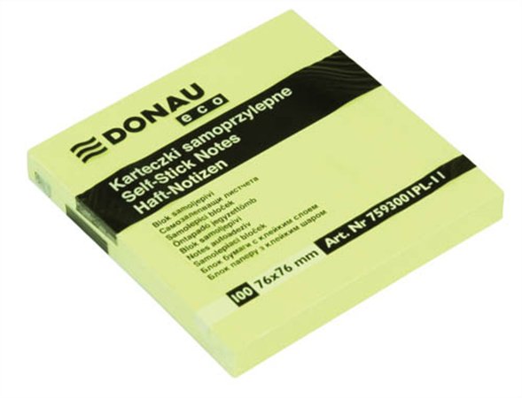 Öntapadó jegyzettömb, 76x76mm, 100 lap, DONAU "ECO", sárga