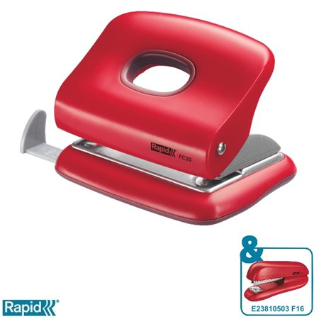 Lyukasztó, kétlyukú, 20 lap, RAPID "FC20", meggyvörös