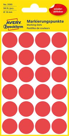 Etikett, 18 mm, kör, eltávolítható, AVERY ZWECKFORM, piros, 96 etikett/csomag