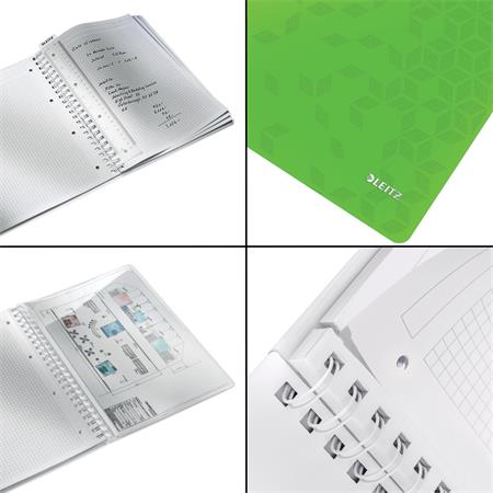 KezdőlapIrodaszerekIrodai papíráruFüzetek, gyűrűskönyvbetétekSpirálfüzet, A4, kockás, 80 lap, LEITZ "Wow", zöld