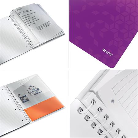 Spirálfüzet, A4, vonalas, 80 lap, LEITZ "Wow", lila