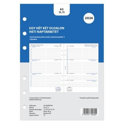Kalendárium betét, tervező, heti, A5 (L), FILOFAX, 2026
