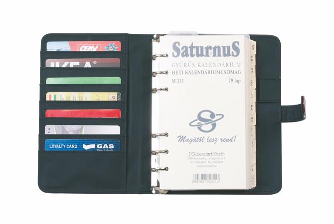 Kalendárium, gyűrűs, betétlapokkal, "L", műbőr, SATURNUS, "437", fekete