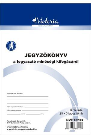 Nyomtatvány, jegyzőkönyv a fogyasztó minőségi kifogásáról, 25x3, A5, VICTORIA PAPER, "B.13-233", 20 tömb/csomag