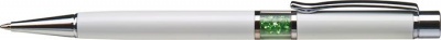 Golyóstoll, fehér, középen peridot zöld SWAROVSKI® kristállyal töltve, 14cm, ART CRYSTELLA®