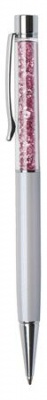 Golyóstoll, krémfehér, felül rózsaszín SWAROVSKI® kristállyal töltve, 14 cm, ART CRYSTELLA®