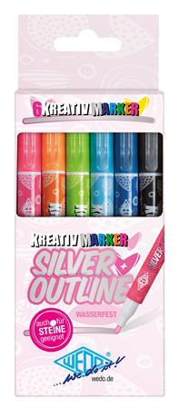 A tollhegy rövid lenyomása után az ezüst szöveget vékony színes körvonal veszi körül, így a dupla vonalú metálfényű markerrel egyszerre két színnel írhat.