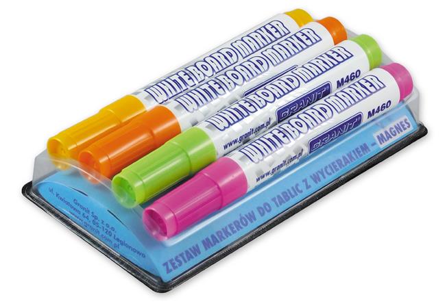 Táblamarker készlet, 2-3 mm, kúpos, mágneses tolltartóval, GRANIT "M460", 4 különböző szín