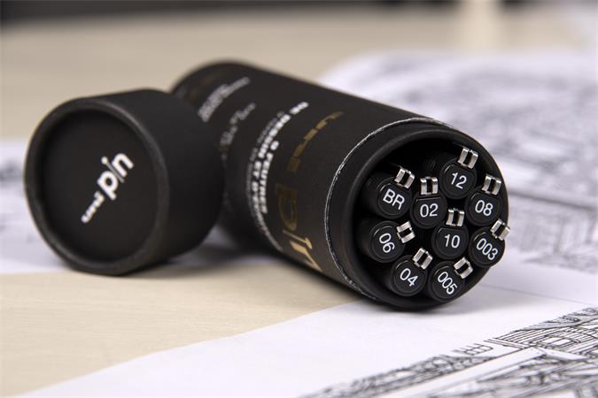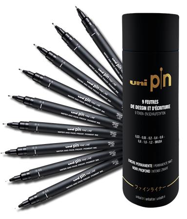 Rajzmarker készlet, UNI PIN "Tube", 9 különböző vonalvastagság, fekete