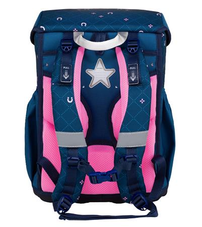- a táska ergonomikus, párnázott hátrésze és a stabilitást biztosító mellkaspánt tehermentesíti a gyermek hátát, vállait, és javítja a táska viselésének komfortját mozgás közben is.