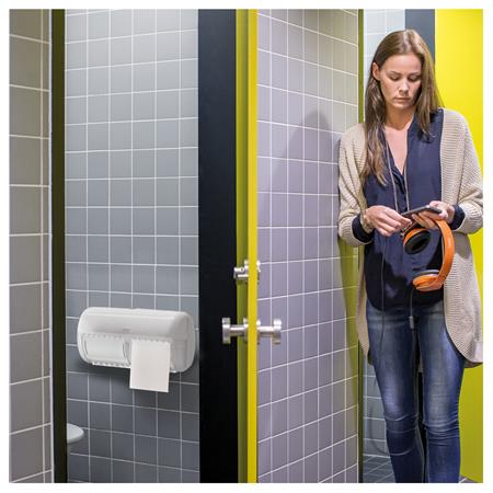 Az Elevation termékcsaládba tartozó Tork kis tekercses toalettpapír adagoló használata alacsony fogalmú mosdókban javasolt. Mivel két kis tekercses toalettpapír található benne, ritkábban kell utántölteni. Az Elevation adagolók praktikus, modern kialakítása mély benyomást tesz a vendégekre.