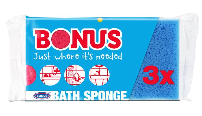 A Bonus 3 darabos fürdőszivacsa extra habzást és gyorsabb tisztálkodást biztosít kortól és nemtől függetlenül. A fürdőszivacsokból 3 különböző színű kerül egy csomagba, melynek köszönhetően a családtagok nem keverik össze egymáséit. A kellő habzás már kevés hab-, és tusfürdővel is elérhető, ugyanis a fürdőszivacs sűrűsége optimális nedvességtartást és habzást biztosít, így takarékosabban és alaposabban tisztálkodhatunk. A fürdőszivacsokat használat után alaposan kiöblítve, száraz helyen javasolt tárolni.