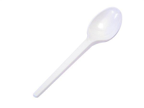 Fehér, műanyag eldobható kanál, kerti partik, büfék és fesztiválok elengedhetetlen kelléke.