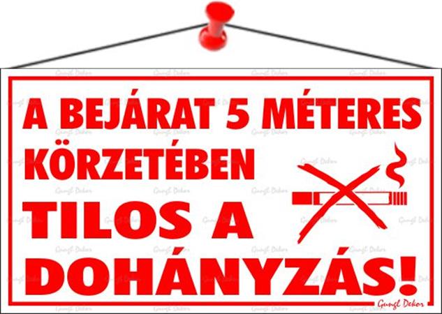 A bejárat 5 méteres körzetében tilos a dohányzás! információs tábla