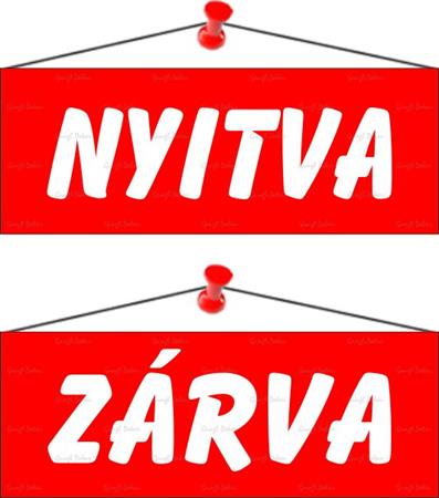 Információs tábla, 22x8,5 cm, kétoldalas, "Nyitva/Zárva", piros