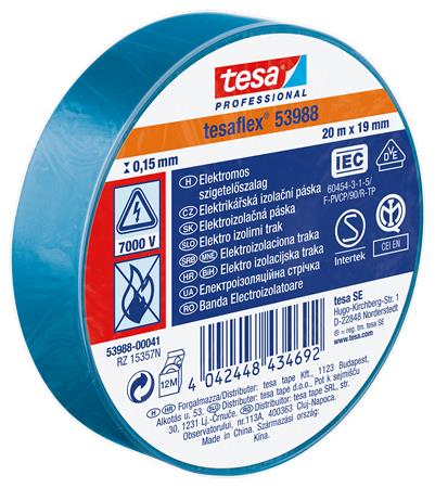 Szigetelőszalag, 19 mm x 20 m, TESA "Professional", kék