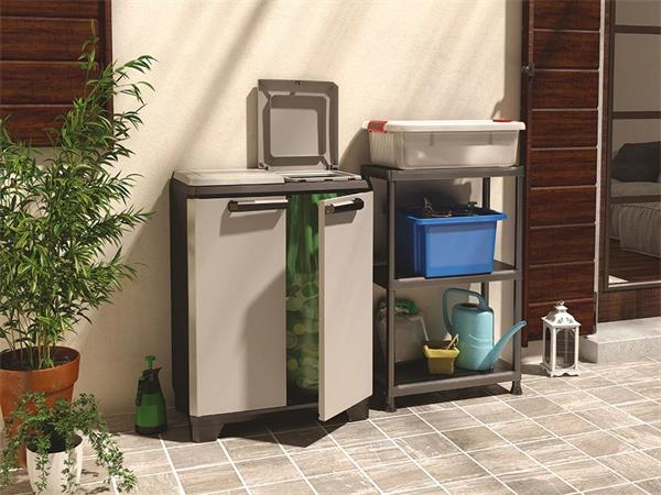 Szelektív hulladékgyűjtő szekrény, műanyag, KETER "Split Premium", szürke/fekete