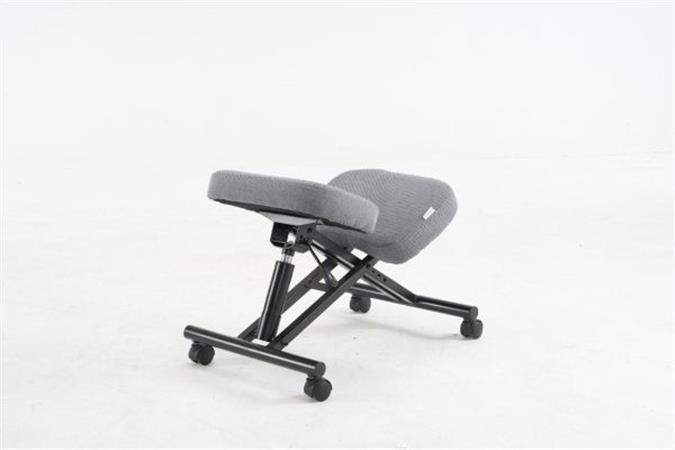Térdeplőszék, gázliftes, szürke szövetborítás, fekete fém váz
