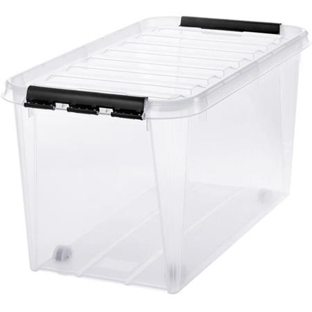Műanyag tárolódoboz, 70 liter, fekete fogantyúkkal, SMARTSTORE "Classic 70", átlátszó