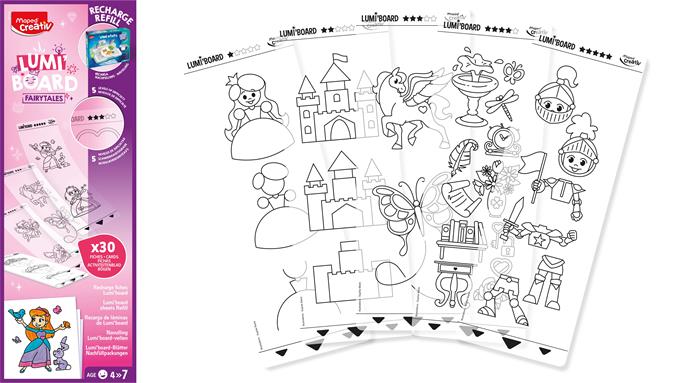 A Lumi Board utántöltő 30 új, a mesék univerzuma által arra ösztönzi a gyerekeket, hogy folytassák a világító rajzolás varázsát.