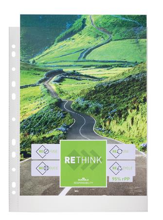 Lyukasztás nélküli dokumentumok praktikus tárolására iratrendezőkben és gyűrűskönyvekben.-kristálytiszta minőség (80 µm)-szakadásvédelem-dokumentum védelem-megerősített lyukakkal-az univerzális lyukasztásnak köszönhetően iratrendezőkbe és gyűrűskönyvekbe is lefűzhető-felül nyitott-speciális szín: víztiszta-anyaga: polipropilén (legalább 95%-ban előzetesen újrahasznosított műanyagból készült)-formátum: A4 álló-méret: 230 x 304 mm (szé x ma)