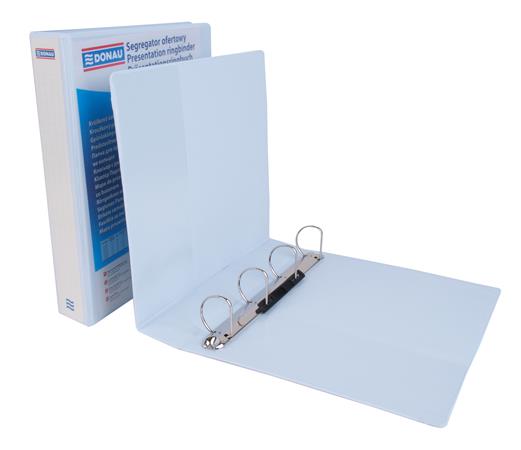 Gyűrűs könyv, panorámás, 4 gyűrű, D alakú, 63 mm, A4, PP, DONAU, fehér