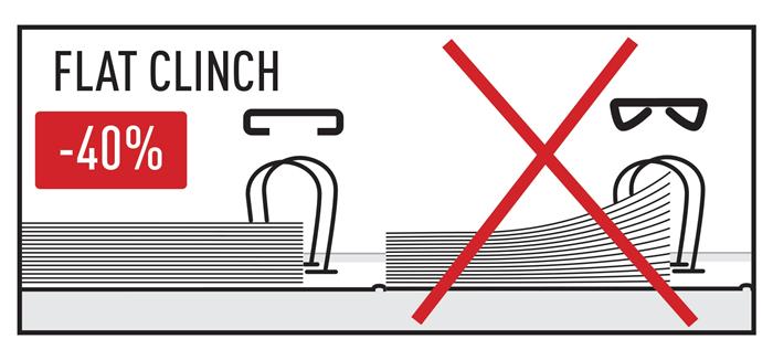 a lapos tűzés technológia a tűzés helyén laposabb papírkupacok által 40%-os helymegtakarítást eredményez