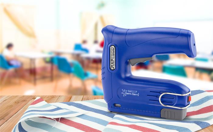 Tűzőpisztoly, vezeték nélküli, elektromos, USB, RAPESCO Germ-Savvy "T12-USB", kék