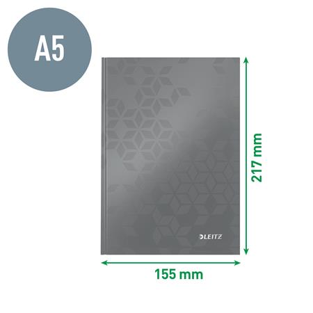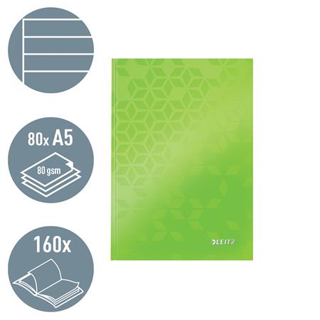 Beíró, A5, vonalas, 80 lap, keményfedeles, LEITZ "Wow", zöld