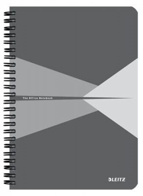 KezdőlapIrodaszerekIrodai papíráruFüzetek, gyűrűskönyvbetétekSpirálfüzet, A5, kockás, 90 lap, laminált karton borító, LEITZ "Office", szürke