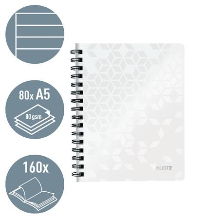 Spirálfüzet, A5, vonalas, 80 lap, LEITZ "Wow", fehér