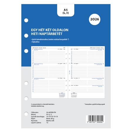 Kalendárium betét, tervező, heti, A5 (L), FILOFAX, 2026