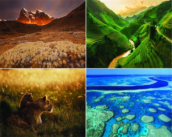 -naptár rész: magyar, angol, német nyelven, magyar  ünnepek  és névnapokkal, napkelte, napnyugta és holdállás  feltüntetésével