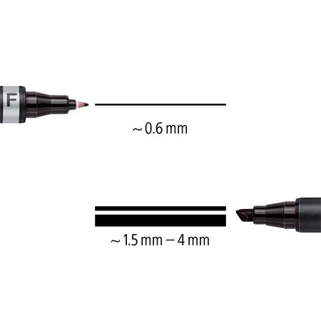 -vonalvastagság: kb. 0, 6 mm (F) és kb. 1, 5 mm (M - kúpos hegy)