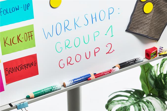 A STABILO MARKdry egy vastag színes jelölő ceruza whiteboard táblákhoz és flipchartokhoz.