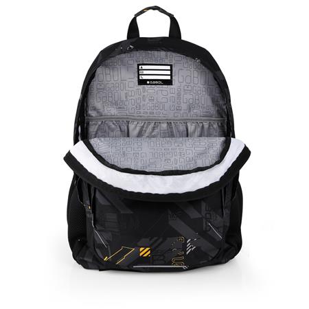 KezdőlapIrodaszerekIskolaszerekÓvodai és iskolatáskákHátizsák, iskolatáska, cipzáras, GABOL "Byte", fekete, geometrikus mintás