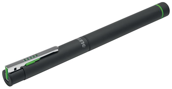 Okos prezentációs eszköz, a prezentációk elengedhetetlen kelléke. Minden funkció, amire egy hatásos prezentációhoz szükséges lehet egy elegáns tollba rejtve - bemutatóvezérlő, piros lézermutató és golyóstoll. Plug and Play szabványú, vezeték nélküli vevőegység Windows és Mac számítógépekhez, egyetlen szoftvert sem szükséges telepíteni. Az USB-vevőegység a kupakban van elrejtve. 3-gombos vezérlő - előre és vissza lapozás, valamint lézermutató gomb. A vörös színű lézermutatóval mindig a lényegre mutathatsz. Kompakt, elegáns formatervezés, akár egy ingzsebben is elfér. Kiváló minőségű, fekete színű golyóstoll (D1 típusú utántöltő, méret: 67 mm). Könnyen cserélhető, hosszantartó AAA elemmel. RF hatótávolság: 15 m.