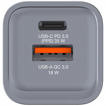 Támogatja akár 2 eszköz egyidejű töltését is, (max 35 W teljes teljesítménnyel) egy karcsú, tenyérnyi kialakításban. Összecsukható egyesült államokbeli száraival és cserélhető EU- és UK-dugaszaival a tökéletes útitárs.
