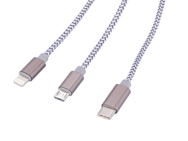 Töltőkábel 3 in 1, 1 m, TROIKA "Dreizack", szürke