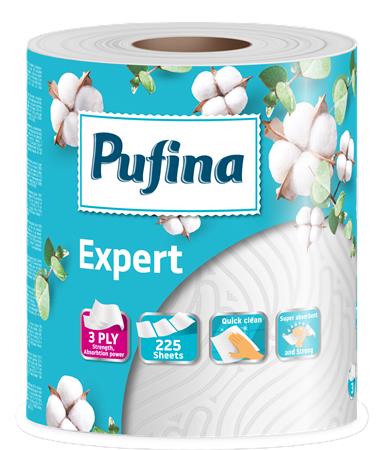 Háztartási papírtörlő, 3 rétegű, 225 lap, 1 tekercses, PUFINA "Expert"