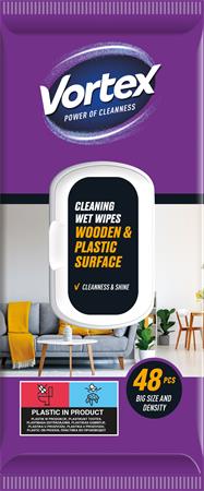 Nedves törlőkendő, fa- és műanyag felületre, 48 db, VORTEX