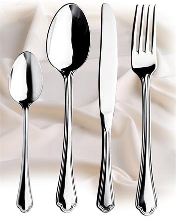 KezdőlapÜzemeltetésKonyhai termékekEvőeszközökEvőeszköz szett, rozsdamentes acél, 24 db-os szett, "Ranieri"